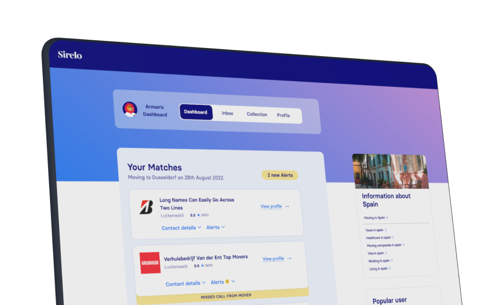 Sirelo es una plataforma de mudanzas independiente fundada en el 2016. Tanto si te mudas a la vuelta de la esquina como al otro lado del mundo, estámos aquí para ayudarte. En nuestra web encontrarás información relevante para tu mudanza, herramientas útiles y una gran lista de empresas de mudanza cerca de ti. Nuestro objetivo final es ayudarte al máximo a lo largo de tu mudanza para que puedas mudarte con una sonrisa. 🙂